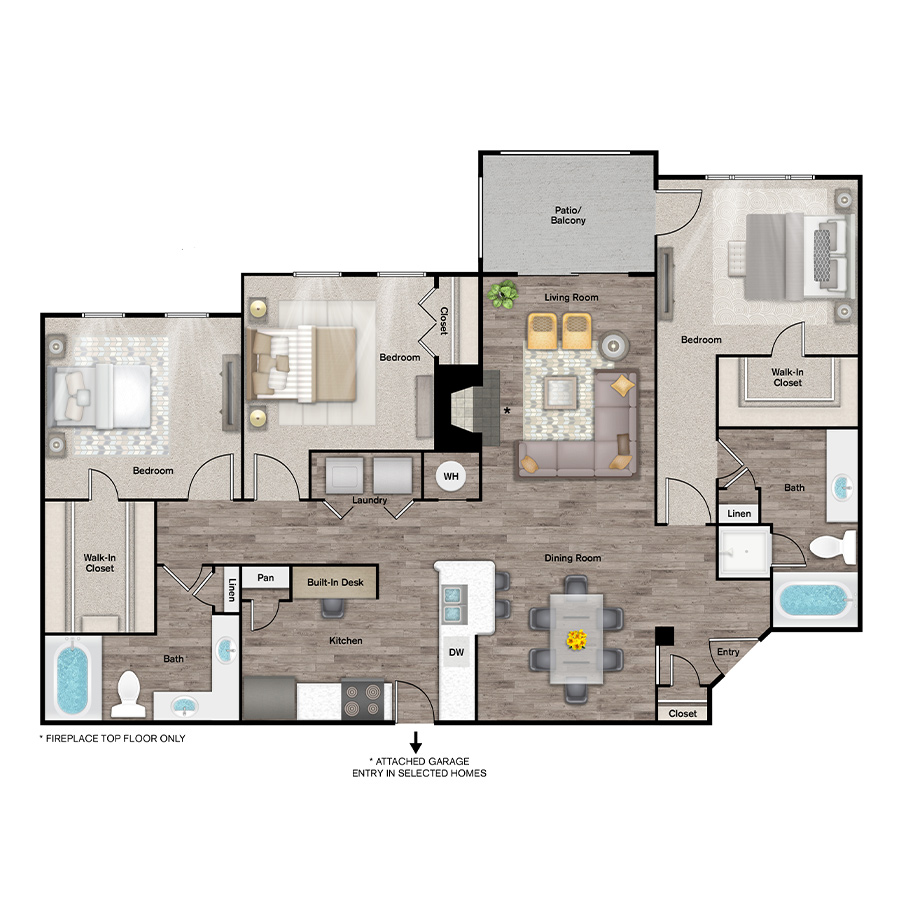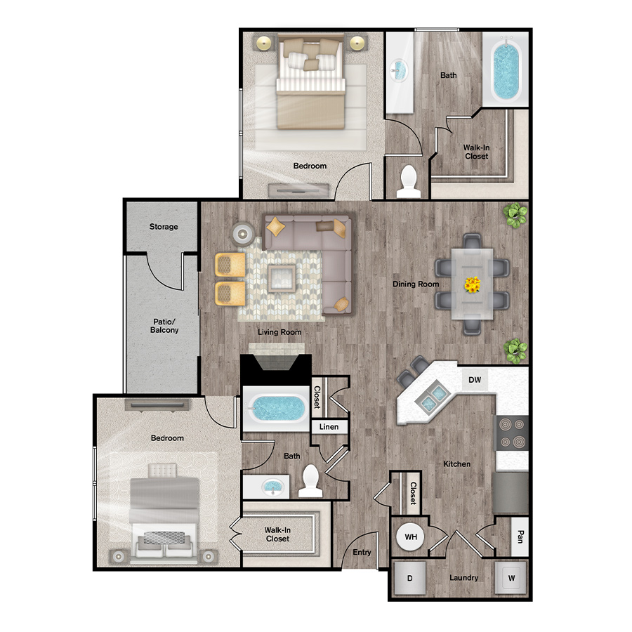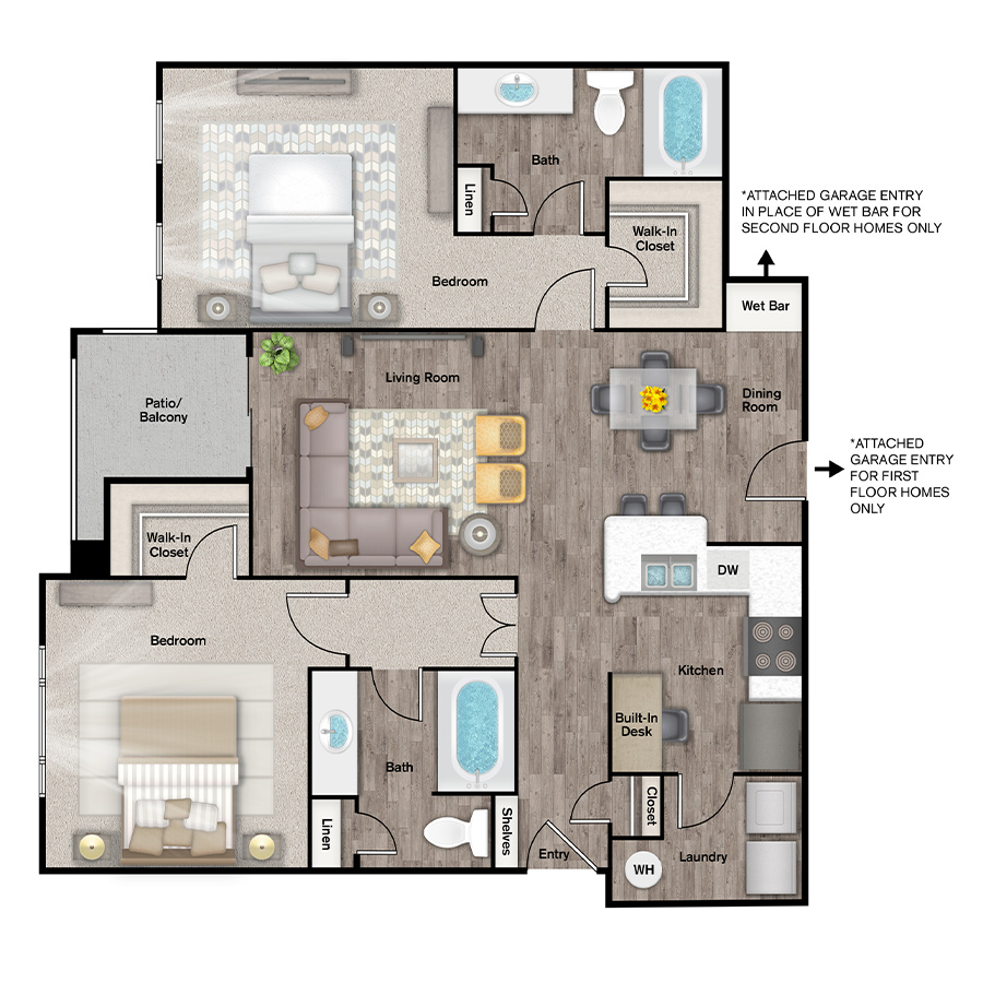 Whether you’re looking for a one, two or three-bedroom home, every apartment home at IMT Cool Springs comes with the space and amenities you need to thrive. Use the filters and map below to find the perfect floorplan and location for your needs.